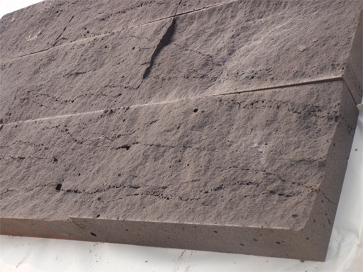 波柄溶岩の切削仕上げは、他の溶岩に比べてとてもきれいなグレー色です。